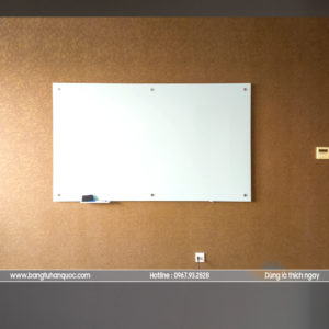 Bảng kính màu trắng sữa, viết bút dạ, dùng kính an toàn hai lớp hoặc kính cường lực, tặng kèm bút dạ, bông lau, khay để bút ….