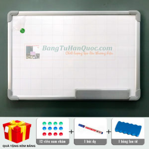 Bảng từ trắng Hàn Quốc là loại bảng cao cấp, sử dụng mặt thép phủ sơn trắng chống lóa nhập khẩu Hàn Quốc, cho phép viết bằng bút dạ mượt mà, dễ lau chùi mà không để lại bóng chữ. Đặc biệt, bảng có khả năng hít nam châm mạnh, hỗ trợ đính tài liệu, giấy ghi chú, sơ đồ – cực kỳ tiện lợi cho việc giảng dạy, thuyết trình hay lên kế hoạch công việc.
